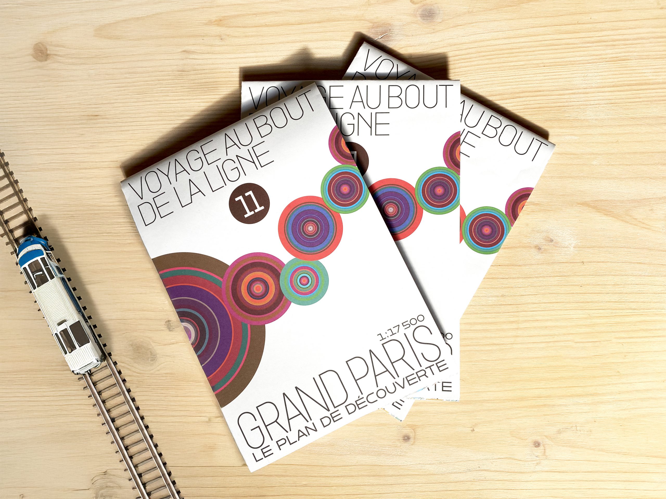La Carte « voyage au bout de la ligne 11 » est un extrait d’un projet plus ambitieux qui englobe la proche périphérie de Paris composée d’une collection de 4 cartes Paris Nord Ouest, Paris Nord est, Paris Sud Est, et Paris Sud Ouest formant lorsqu’elles sont réunis un document de